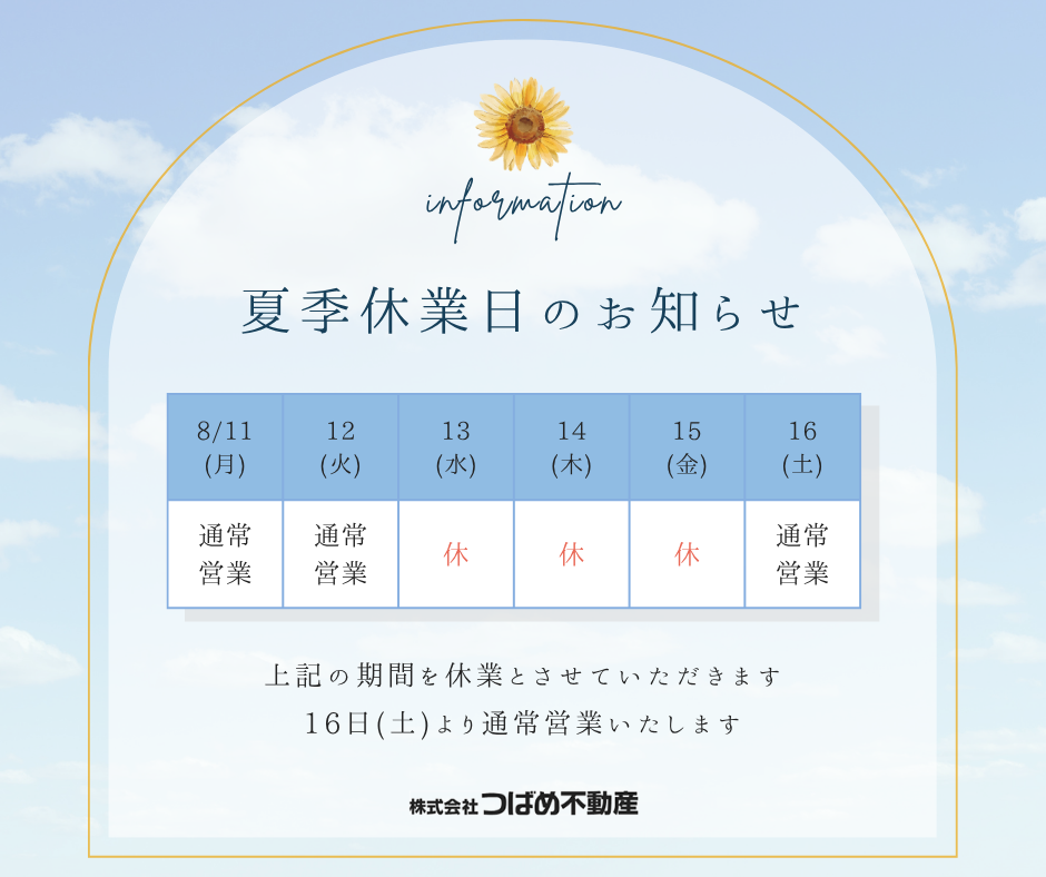夏季休業日:2025年8月13日(水)~2025年8月15日(金)