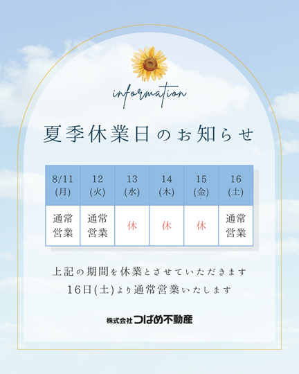 弊社のお盆休みは明日13日~15日までの3日間となっております🌻