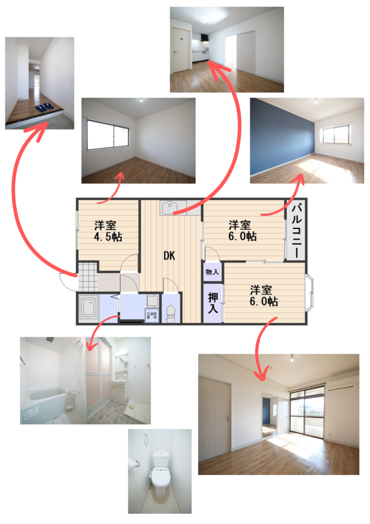 ・間取り:3DK (洋室:4.5帖/6帖/6帖)